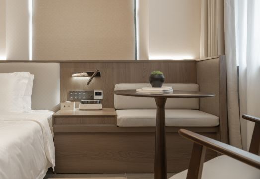 [사진: 월링 호텔의 세련된 와비사비 테마 객실]